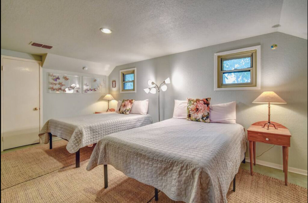 Two twin beds and a shared full bath. This cozy shared room features two comfortable twin beds, each reserved for one guest only. The room is bright and serene, with soft lighting, charming decor. You’ll share the room with one other retreat participant, but each guest enjoys their own individual bed, creating a balance between community and comfort. Has a bathroom.