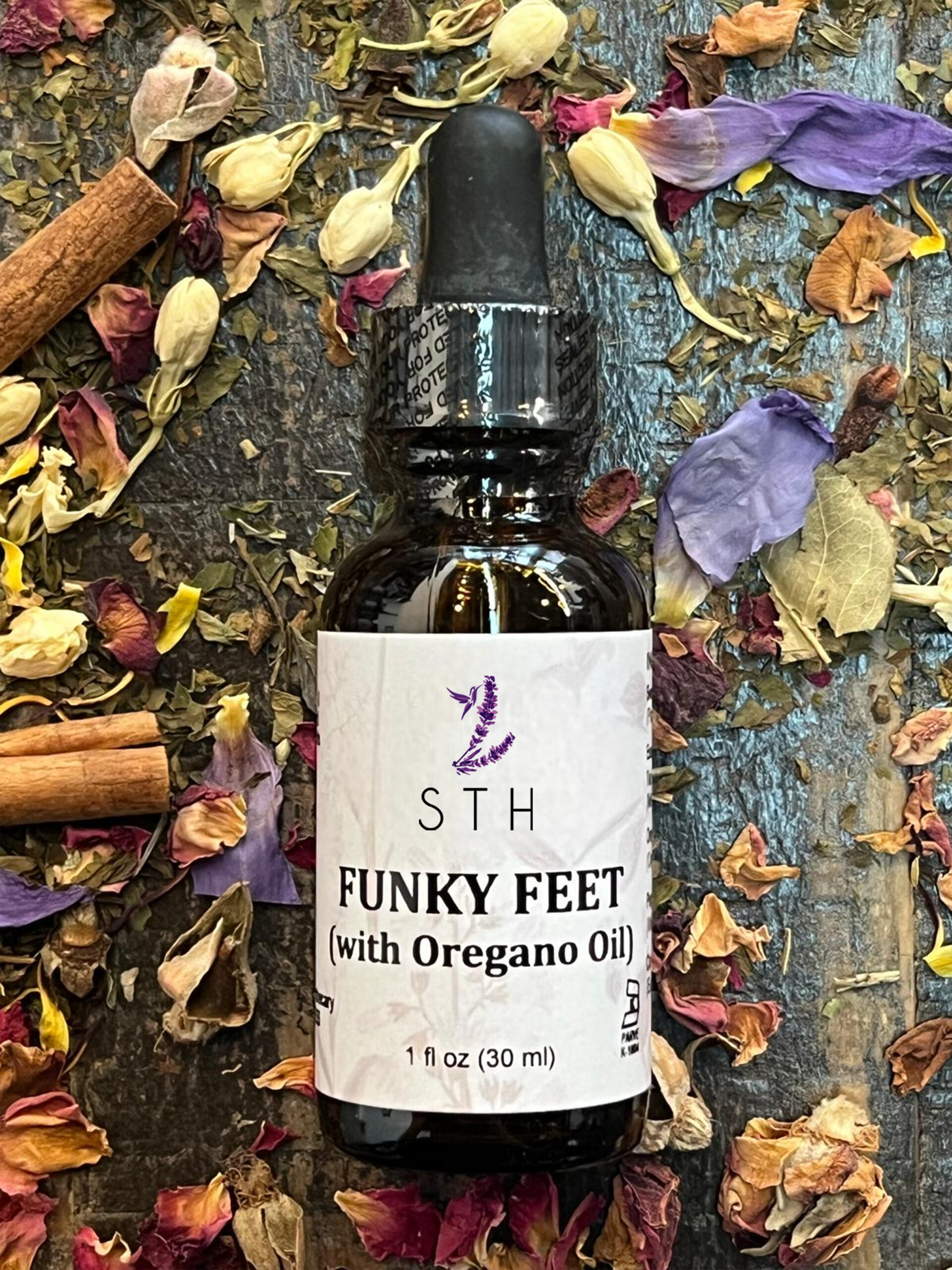 Treat your feet to the revitalizing power of Funky Feet Oil Blend, a dynamic fusion of essential oils designed to cleanse, refresh, and rejuvenate. This unique formula combines Sweet Almond Oil (Prunus dulcis) with the purifying strength of Tea Tree Leaf, the robust benefits of Oregano Leaf, the cooling freshness of Peppermint Leaf, and the warming spice of Clove Bud essential oils. Whether you’re looking to pamper tired feet after a long day or maintain their natural balance, this blend is your go-to solution for freshness and comfort. Funky Feet is also a versatile addition to your aromatherapy routine, offering a clean and herbaceous aroma to uplift your senses.