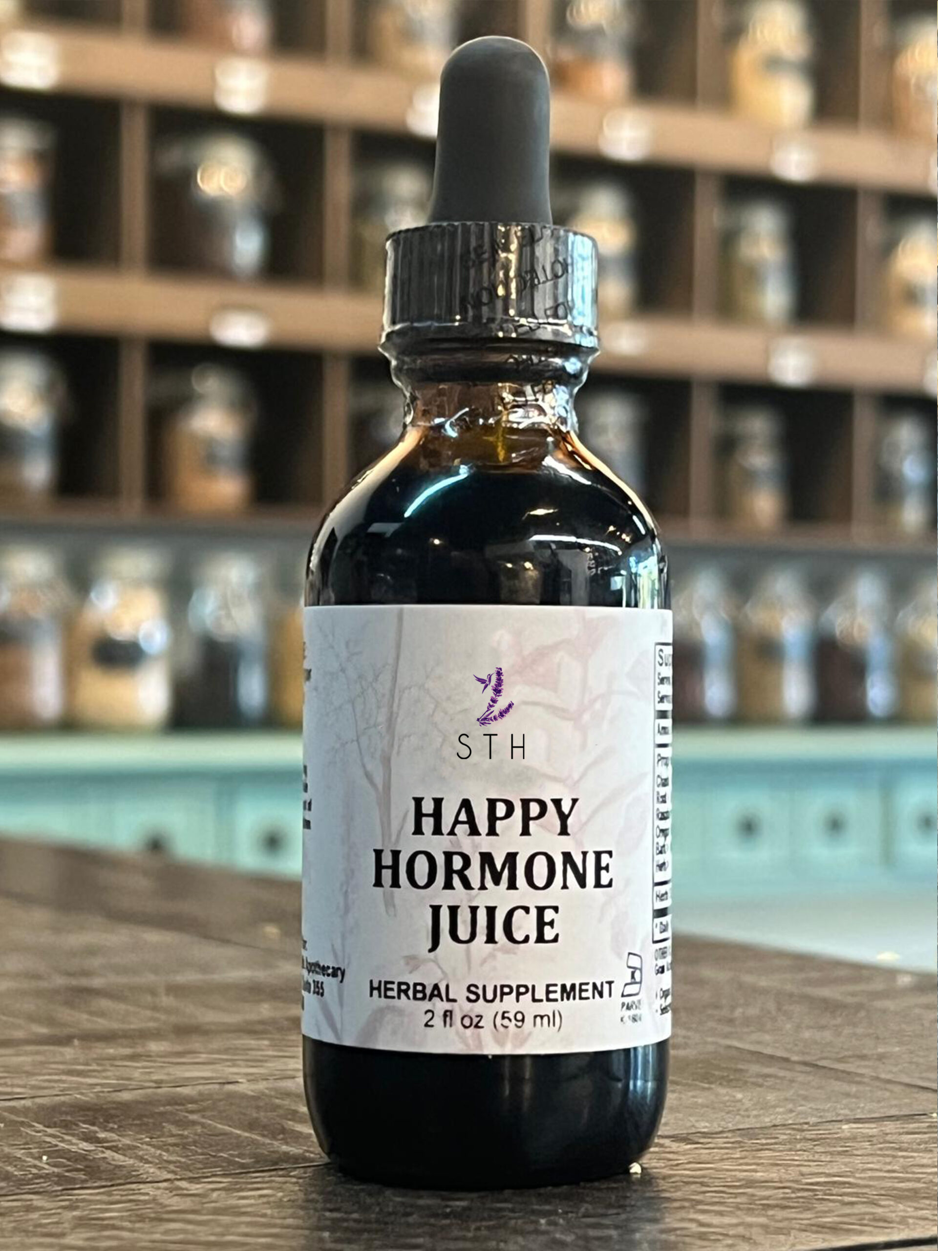 The Happy Hormone Juice formula is designed to work in harmony with your body by addressing various aspects of hormonal balance and overall wellness. Chaste Tree Berries support the body’s natural hormone regulation, while Wild Yam Root and Dong Quai Root promote comfort and ease through menstrual cycles and life transitions. Red Raspberry Leaf nourishes and tones the reproductive system, contributing to long-term balance. To help manage everyday stress, Licorice Root supports adrenal health, enhancing both calmness and vitality. Oregon Grape Root aids in natural detoxification, while Cramp Bark helps relax muscles and alleviate occasional discomfort. The nutrient-rich Nettle Leaf provides essential minerals, and Fresh Garrya Leaf soothes tension, making the blend a holistic formula for promoting harmony and well-being.